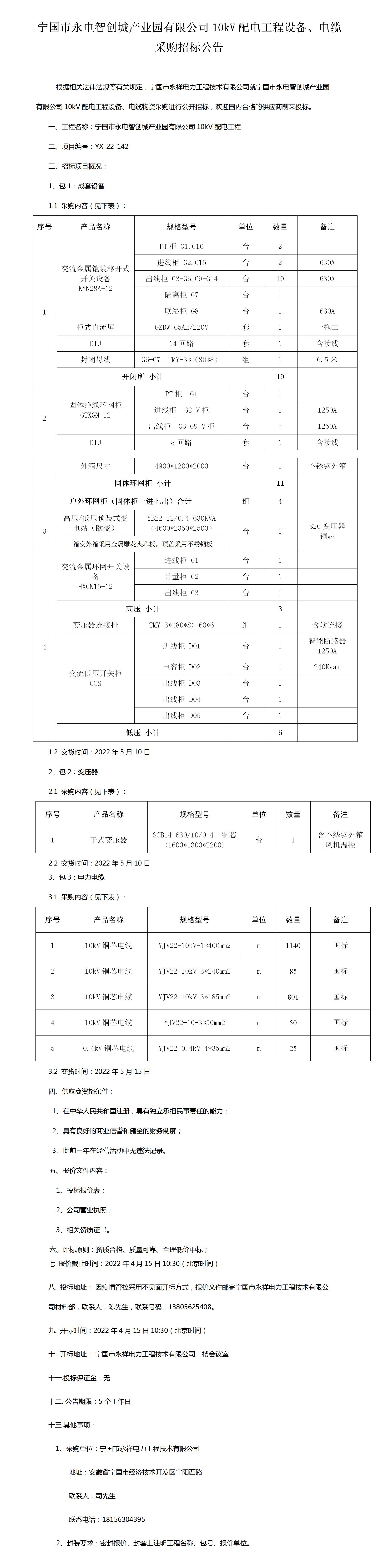 寧國(guó)市永電智創(chuàng)城產(chǎn)業(yè)園有限公司10kV配電工程設(shè)備、電纜 采購(gòu)招標(biāo)公告